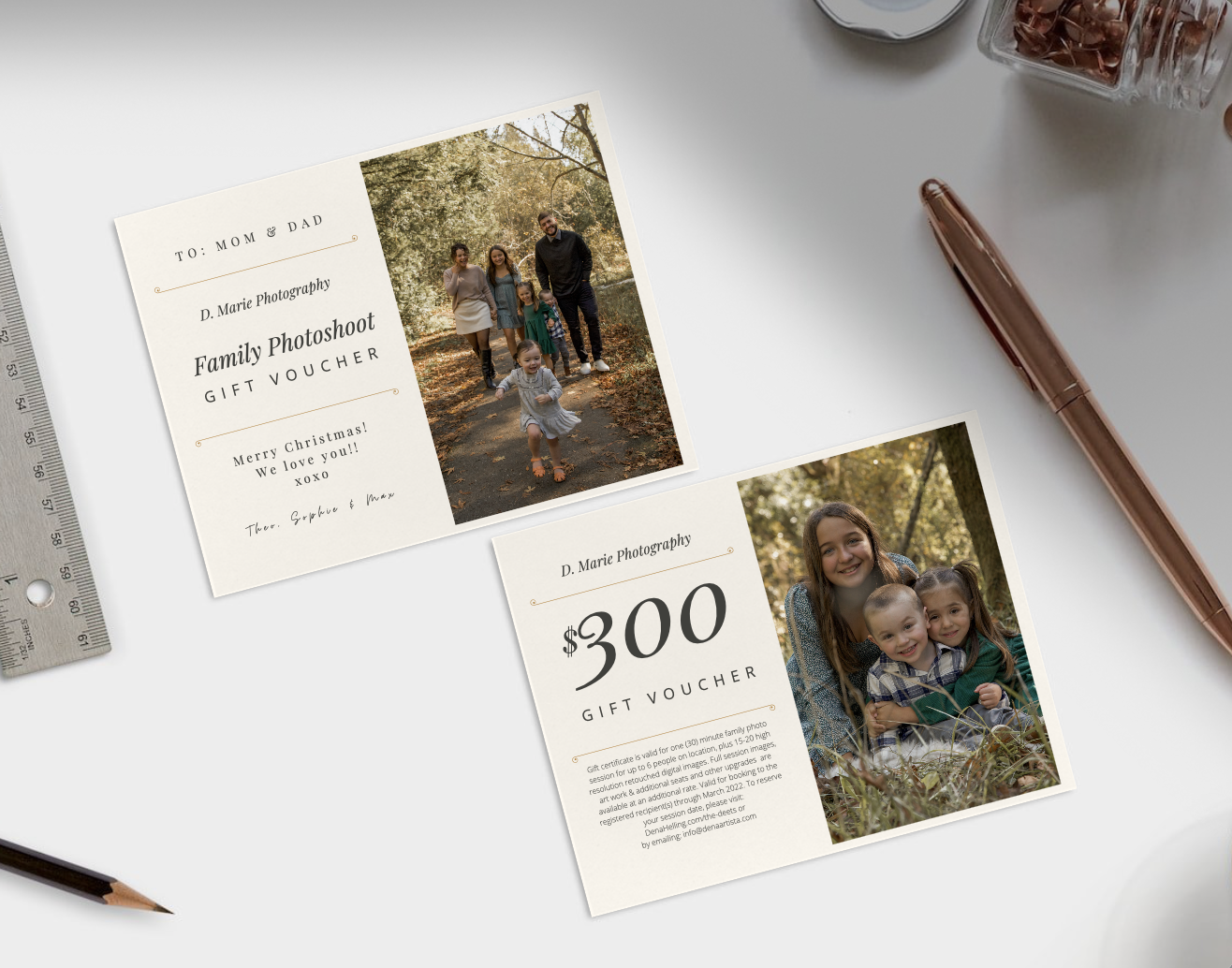 Your lucky recipient will book their session via a custom booking link to redeem the certificate toward the package of their choice.